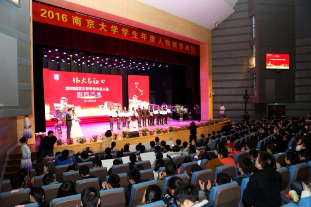 Zhang Yibin, chancellor of Nanjing University, and Chen Jun, academician of the Chinese Academy of Sciences and president of the university, presented to Yu Fan and other nine students the certificates and cups with the honorary title of “Student of 2016 at Nanjing University.”
