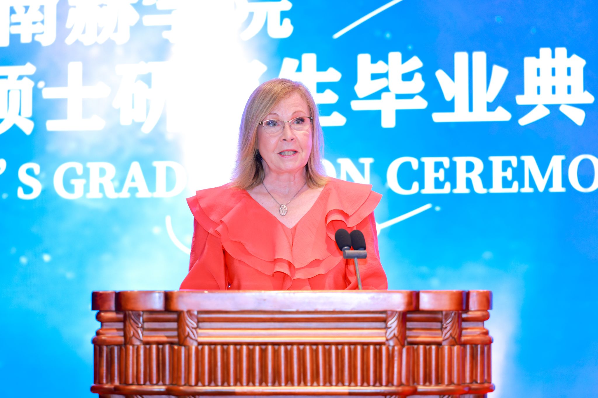 Lindblom extended heartfelt congratulations to the first graduates and expressed deep gratitude to the faculty and staff of Nanjing University and the University of Helsinki. She stated that as the first graduates of Nanjing-Helsinki Institute, the students have demonstrated foresight and partnership spirit, carrying extraordinary historical significance. The successful graduation of the first cohort is not only a highlight of individual academic careers but also the first fruitful outcome of cooperative education between the two universities. The world today urgently needs the younger generation to address and solve issues such as the climate crisis and resource shortages with unique insights. She encouraged all the graduates to apply their knowledge, uphold innovation and bravely tackle global issues with NHI's unique insights and solutions.