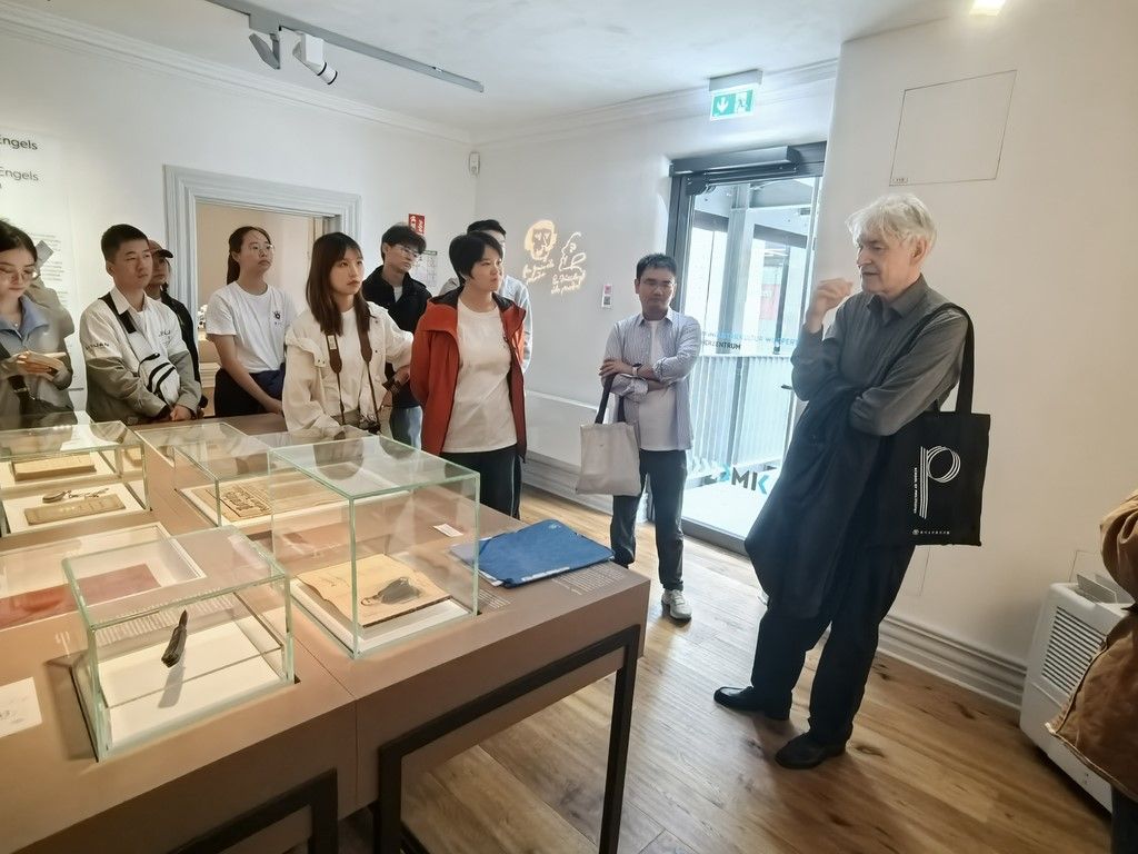 Moving to Wuppertal, in front of the statue of Engels in his former residence, students delved into his multifaceted identity as a revolutionary and thinker through prepared commentary by team members, while also sensing his profound bond with Marx. Professor Smail Rapic from the University of Wuppertal provided detailed insights into artifacts and shared anecdotes about the great thinkers. He engaged the students in deep discussions on topics like "The Current State of Marxist Studies in Germany" and "The Global Significance of Chinese Modernization."