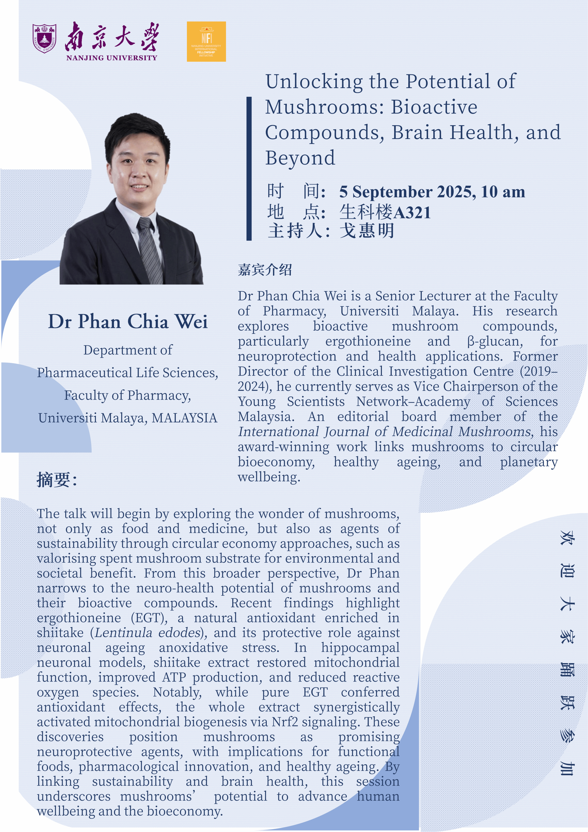 Lecture by Dr. Phan Chia Wei on "Unlocking the Potential of Mushrooms: Bioactive Compounds, Brain Health, and Beyond"