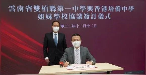 Yin Qiong, Principal of Shuangbai No.1 High School, and Wu Huanjie, Principal of Pui Kiu Middle School, signed the cooperation agreement at the meeting.