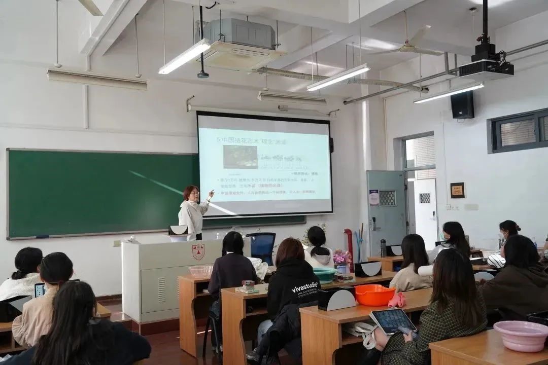 Ms. Yu's engaging explanations transform the theoretical aspect of learning into an enjoyable experience. Long Rong, a student from the School of History said that "I have learnt that in just a few succinct lines, the ancient people's meticulous process of arranging flowers can be vividly depicted before our eyes: they shield the flowers from wind and rain with a heavy curtain, trim them with exquisite scissors inlayed with cold, collect rain and dew in a jade pot to preserve their freshness, and display the flowers on intricately carved pedestals. Additionally, after arranging the flowers, they would create paintings, compose music, and recite poetry in their honor. This series of activities made me feel deeply the ancient people's profound love for flowers. Perhaps only through such reverence can we truly match the innate beauty of flowers."