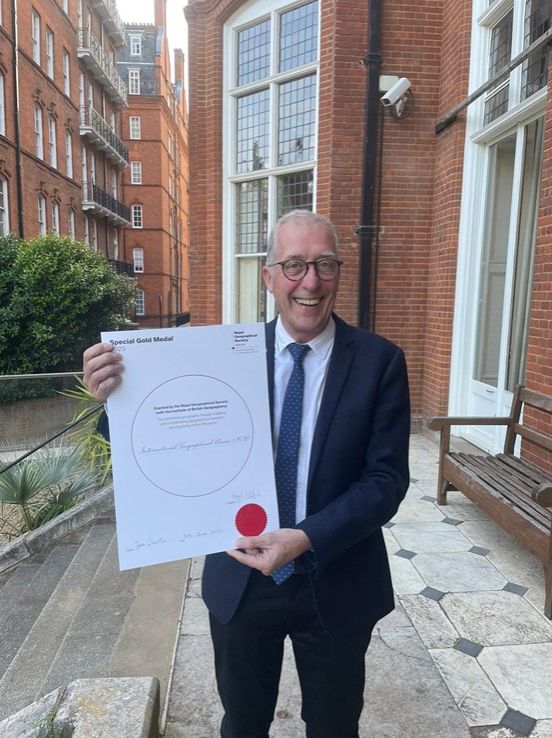 Professor Michael Meadows receives the Royal Geographical Society's Special Gold Medal on behalf of the International Geographical Union. (COURTESY PHOTO)