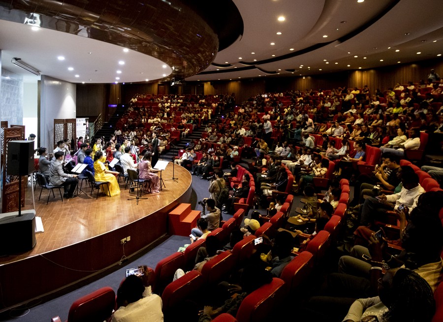 Members of the traditional instrument orchestra of China's Nanjing University perform at the University of Nairobi in Nairobi, Kenya, on April 18, 2024. (Xinhua News Agency/Li Yahui)