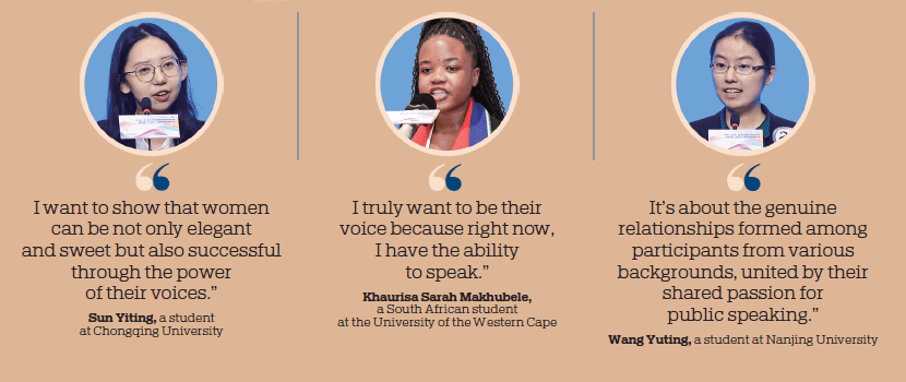 With the slogan "Let the world hear you", the competition has not only promoted diverse voices but also brought together young people from around the globe. "It's about the genuine relationships formed among participants from various backgrounds, united by their shared passion for public speaking," Wang said.