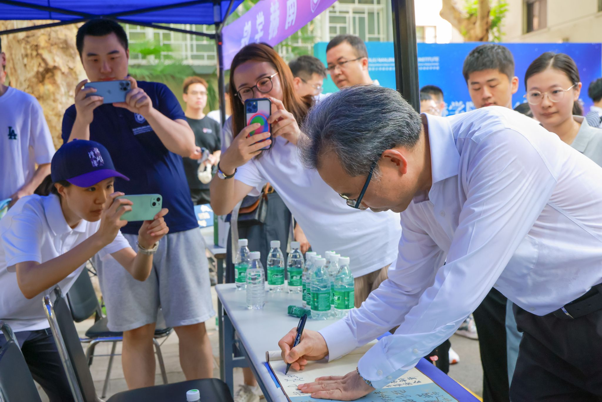 During his visit, President Tan engaged with the new students, encouraging them to embrace NJU's community and values. He emphasized that NJU's rich history and abundant resources provide students with unique opportunities for personal growth and the exploration of various career paths. He expressed his hope for students to have a joyful and rewarding experience at NJU. Students gathered around President Tan, inviting him for group photos and presenting him with self-designed cultural souvenirs.