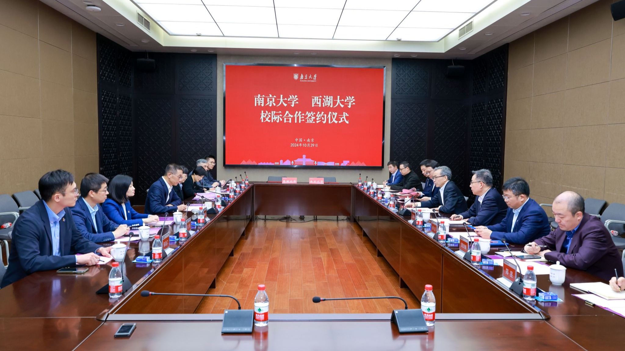 Wang Zhenlin, Vice President of NJU, and Zhu Xiaoyun, Vice President of Westlake University, signed the cooperation agreement on behalf of each institution.