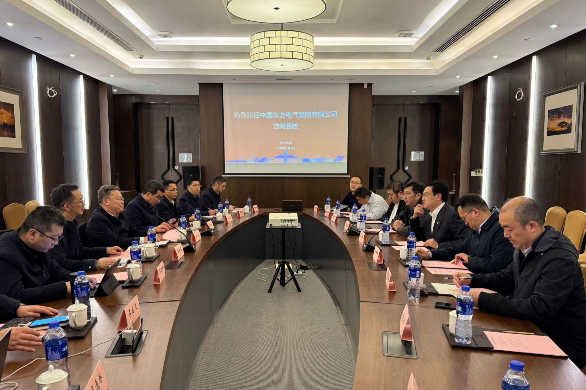 On March 5, Wang Jun, Deputy General Manager of the Dongfang Electric Corporation (DEC) led a delegation to Nanjing University to discuss the strategic cooperation between NJU and DEC. Suo Wenbin, Vice President of NJU and Ding Aijun, Assistant President attended the meeting.