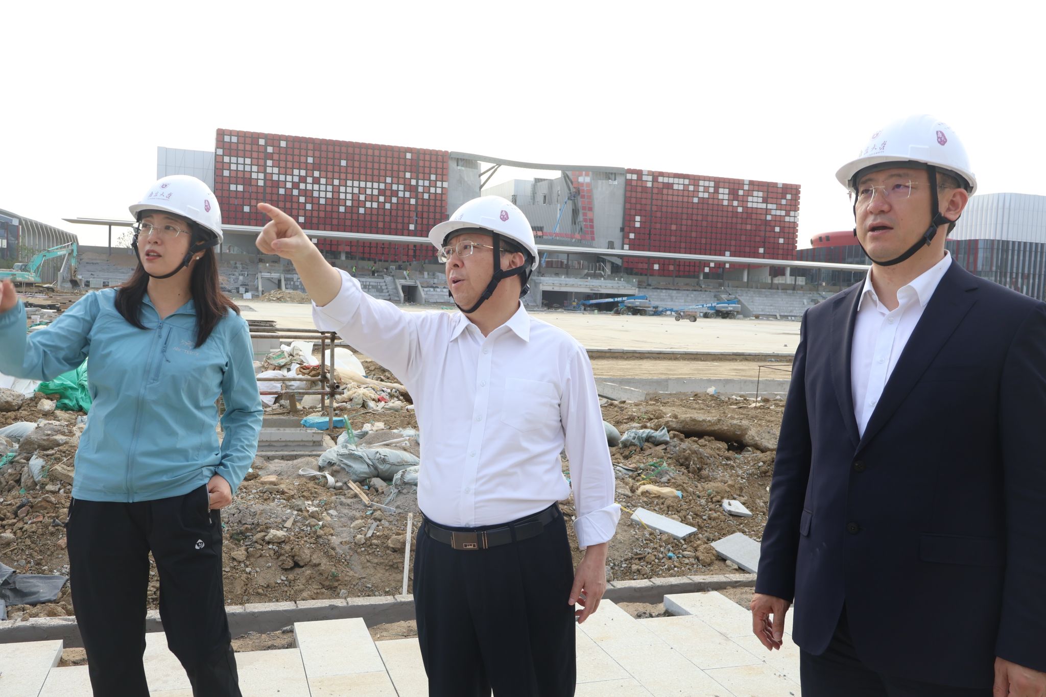 On the afternoon of May 7, Tan Tieniu, Chair of NJU CPC Council and Academician of the Chinese Academy of Sciences, visited the West District of NJU Suzhou Campus to examine the construction progress.