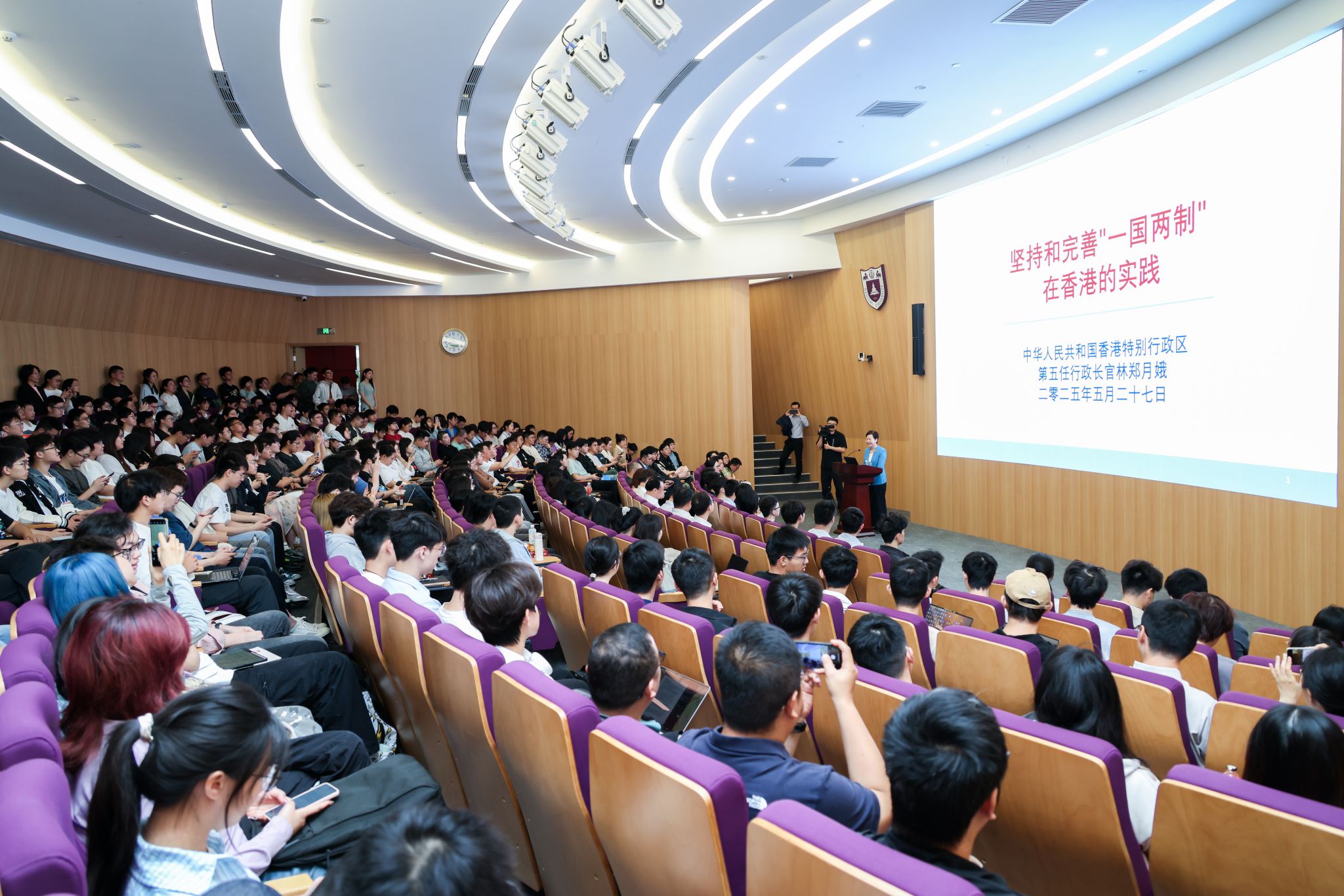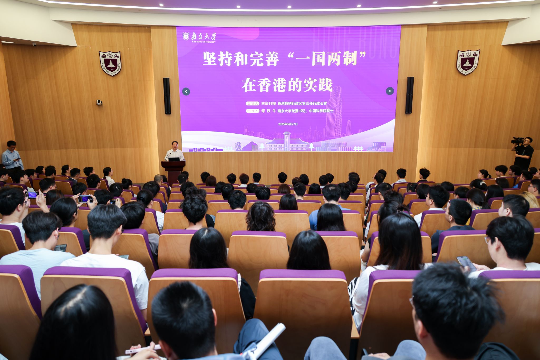 On May 27, Carrie Lam Cheng Yuet-ngor, the fifth Chief Executive of the Hong Kong Special Administrative Region, visited Suzhou Campus of Nanjing University. She delivered a speech titled "Adhering to and Improving the Practice of 'One Country, Two Systems' in Hong Kong", and engaged in warm exchanges with faculty and students. Tan Tieniu, Chair of NJU CPC Council and Academician of the Chinese Academy of Sciences hosted the event.