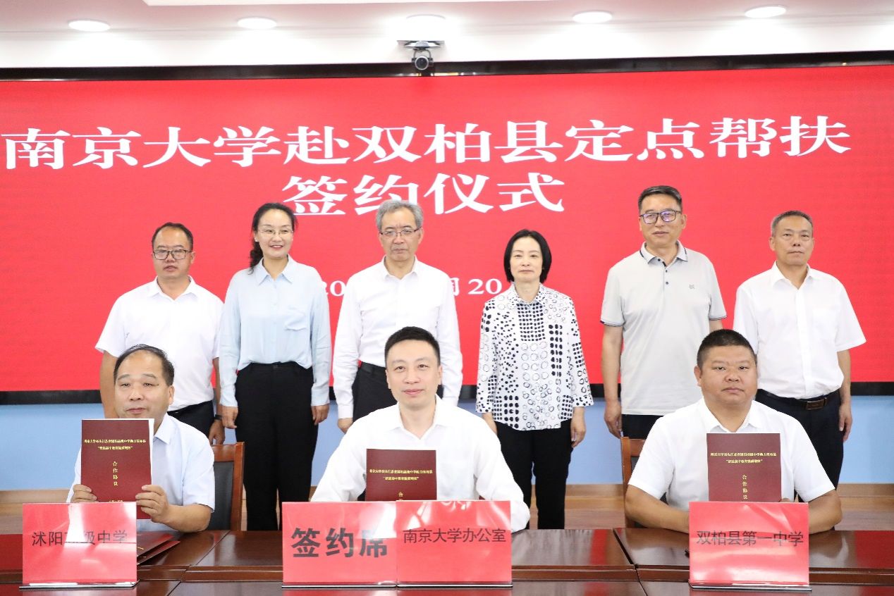 During the symposium, ceremonies were held for the donation of pairing assistance special fund, books and cultural shirts, and the signing of a tripartite cooperation agreement between NJU’s General Office, Shuyang Middle School, and Shuangbai No. 1 Middle School. Shuangbai County presented Yi embroidery works to NJU as a token of gratitude.