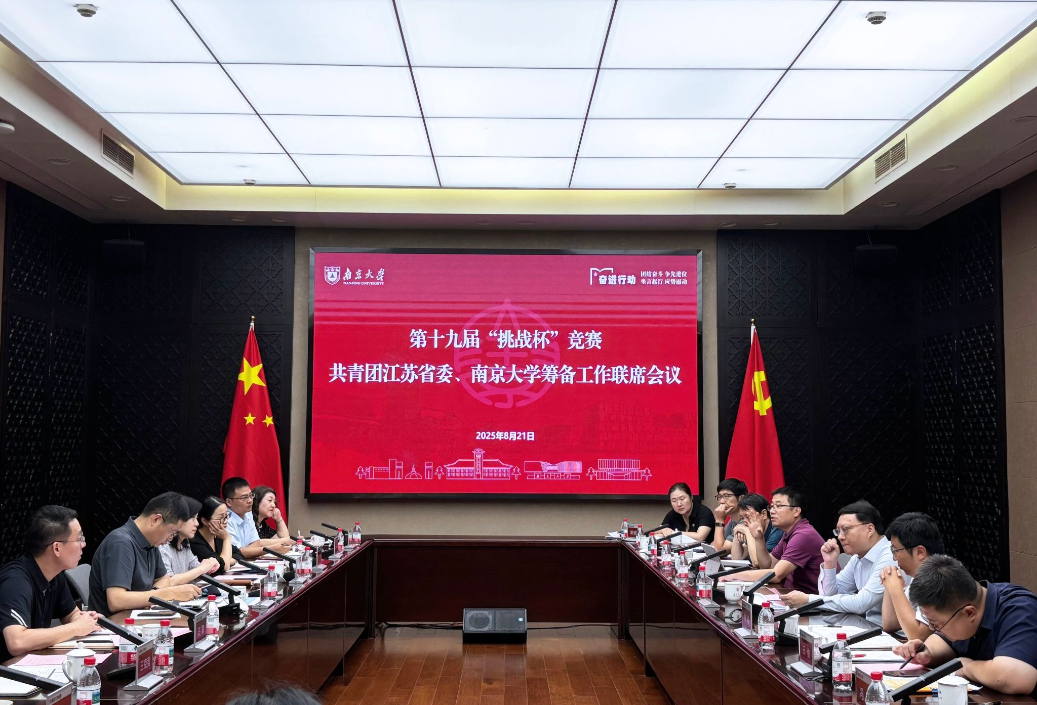 On August 21, the joint preparatory meeting for the 19th "Challenge Cup" Competition between the Jiangsu Provincial Committee of the Communist Youth League and Nanjing University was held on NJU Xianlin Campus. Chen Yunsong, Vice Chair of NJU CPC Council, and Li Xiaoming, Deputy Secretary of the Jiangsu Provincial Committee of the Communist Youth League, attended the meeting and delivered speeches.
