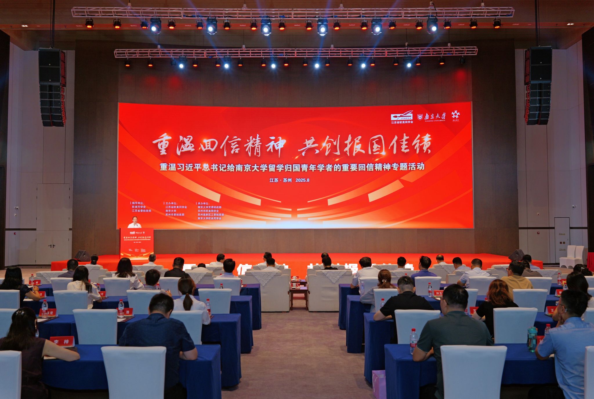 On August 29, a special event to review the spirit of President Xi Jinping's important letter replying to young scholars returning after overseas study was held on Suzhou Campus of Nanjing University. The event was attended by Cao Weixing, Member of the Standing Committee of the Chinese People's Political Consultative Conference, Deputy Director of the Committee on Education, Science, Health and Sports, Vice President of the Western Returned Scholars Association (Overseas-Educated Scholars Association of China), and former Vice Minister of Natural Resources; Hu Guangjie, Member of the Standing Committee of Jiangsu Provincial Party Committee and Director of the United Front Work Department; Tan Tieniu, Chair of NJU CPC Council and Academician of the Chinese Academy of Sciences; and Liu Jiaping, Professor at Southeast University and Academician of the Chinese Academy of Engineering.