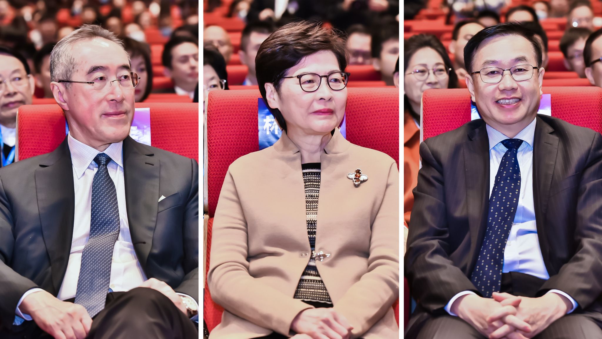 Carrie Lam, Former Chief Executive of the Hong Kong Special Administrative Region and Honorary Chair of the Hong Kong Chamber of Commerce in Jiangsu Province, Henry Tang Ying-yen, Member of the Standing Committee of the National Committee of CPPCC and Founding Chair of the Hong Kong Jiangsu Association, Hu Guangjie, Member of the Party Group and Vice Governor of Jiangsu Provincial Government, Tan Tieniu, Member of the Standing Committee of the National Committee of the CPPCC, Academician of the CAS, and Secretary of the CPC NJU Committee, He Jing, Deputy Director of the Liaison Office of the Central People's Government in the Hong Kong Special Administrative Region, Zhang Xiang, Foreign Academician of the CAS, Member of the National Academy of Engineering and President of the University of Hong Kong, Will Yiu Mau Lung, Member of the National Committee of CPPCC and President of the Hong Kong Jiangsu Association, and guests from the Hong Kong Innovation and Trade Delegation, representatives of relevant departments of the CPC Jiangsu Committee and Jiangsu Provincial Government, representatives of entrepreneurs in Jiangsu, teachers and students of NJU gathered to exchange ideas on science and technology innovation and seek development for the future. The forum was hosted by Tan Zhemin, Academician of the CAS and President of NJU.