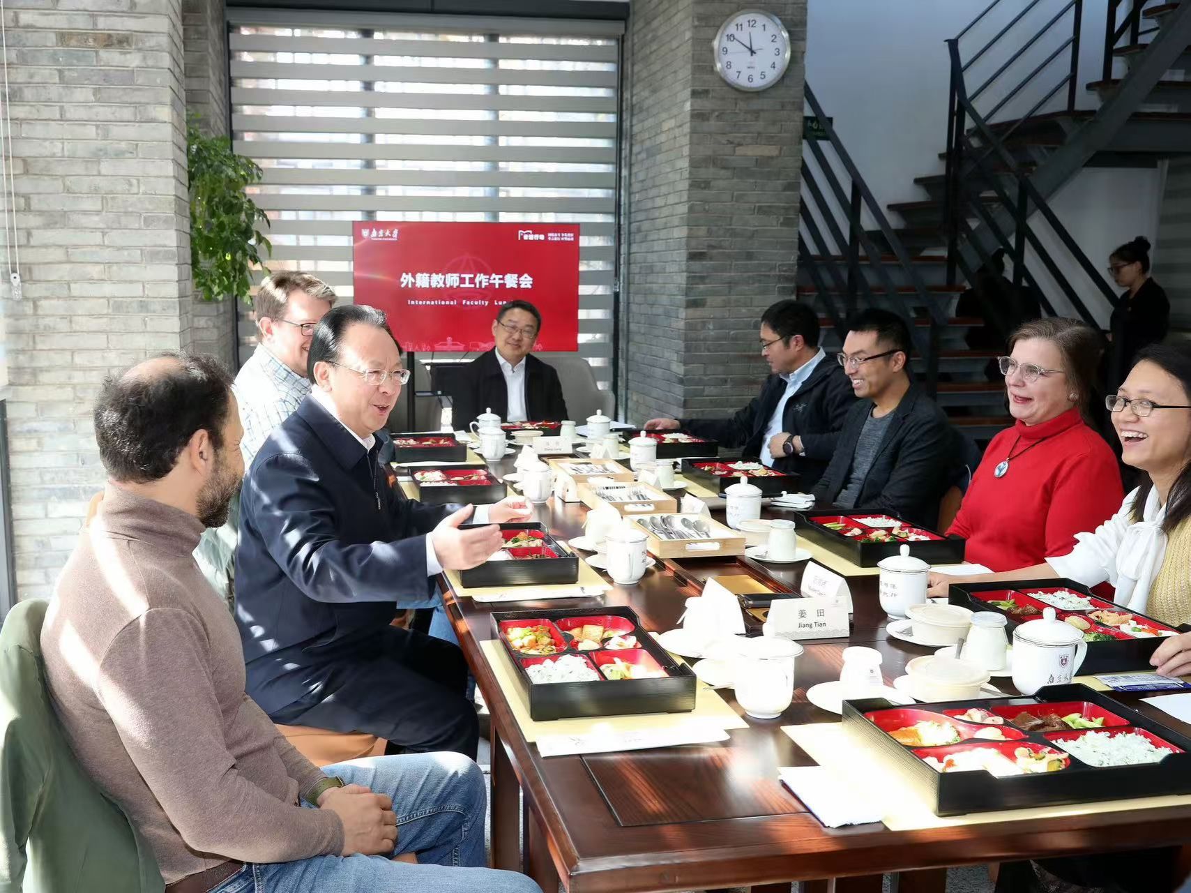 On November 6, Nanjing University held a working luncheon for international faculty representatives. Tan Tieniu, Chair of the University CPC Committee and Academician of the Chinese Academy of Sciences (CAS), attended the luncheon and discussed with foreign teacher representatives from various countries.