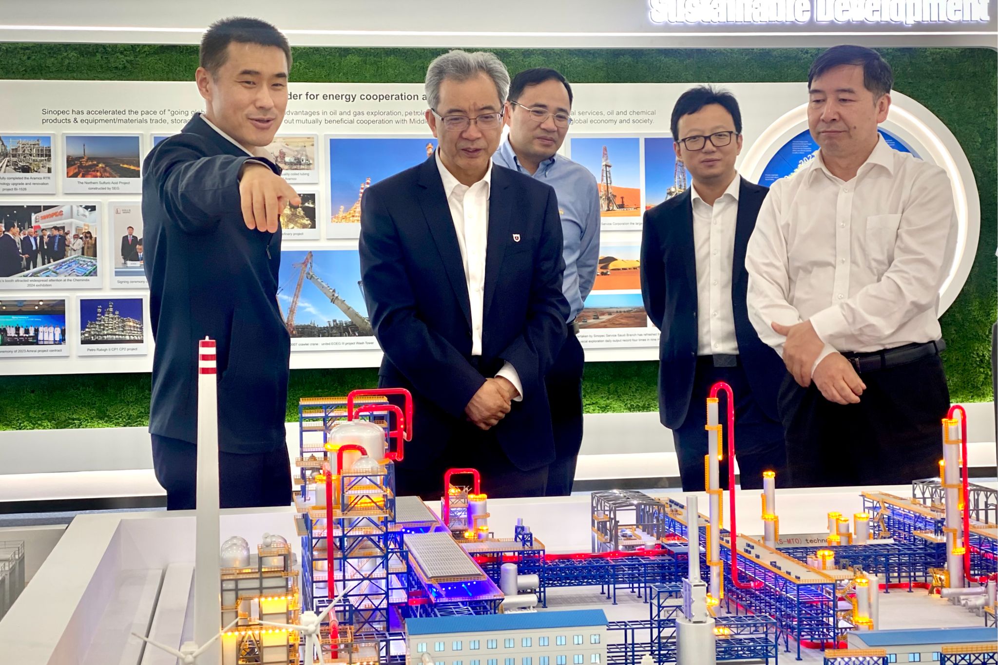 On the afternoon of May 4, the delegation visited the Sinopec Tech Middle East LLC, where they were warmly received by Chen Kunrong, Deputy Representative of Sinopec Middle East, and Ding Shidong, Sinopec Tech Middle East LLC. This center serves as Sinopec's technical research and support hub in the Middle East and as an important platform for external technical exchange and cooperation. Tan Zhemin highly commended Sinopec's strong presence and outstanding influence on the international stage as a globally renowned energy and chemical enterprise. The delegation toured the exhibition hall and core laboratories, engaging in deep exchanges on research cooperation, resource sharing, talent cultivation, and the construction of practical bases.