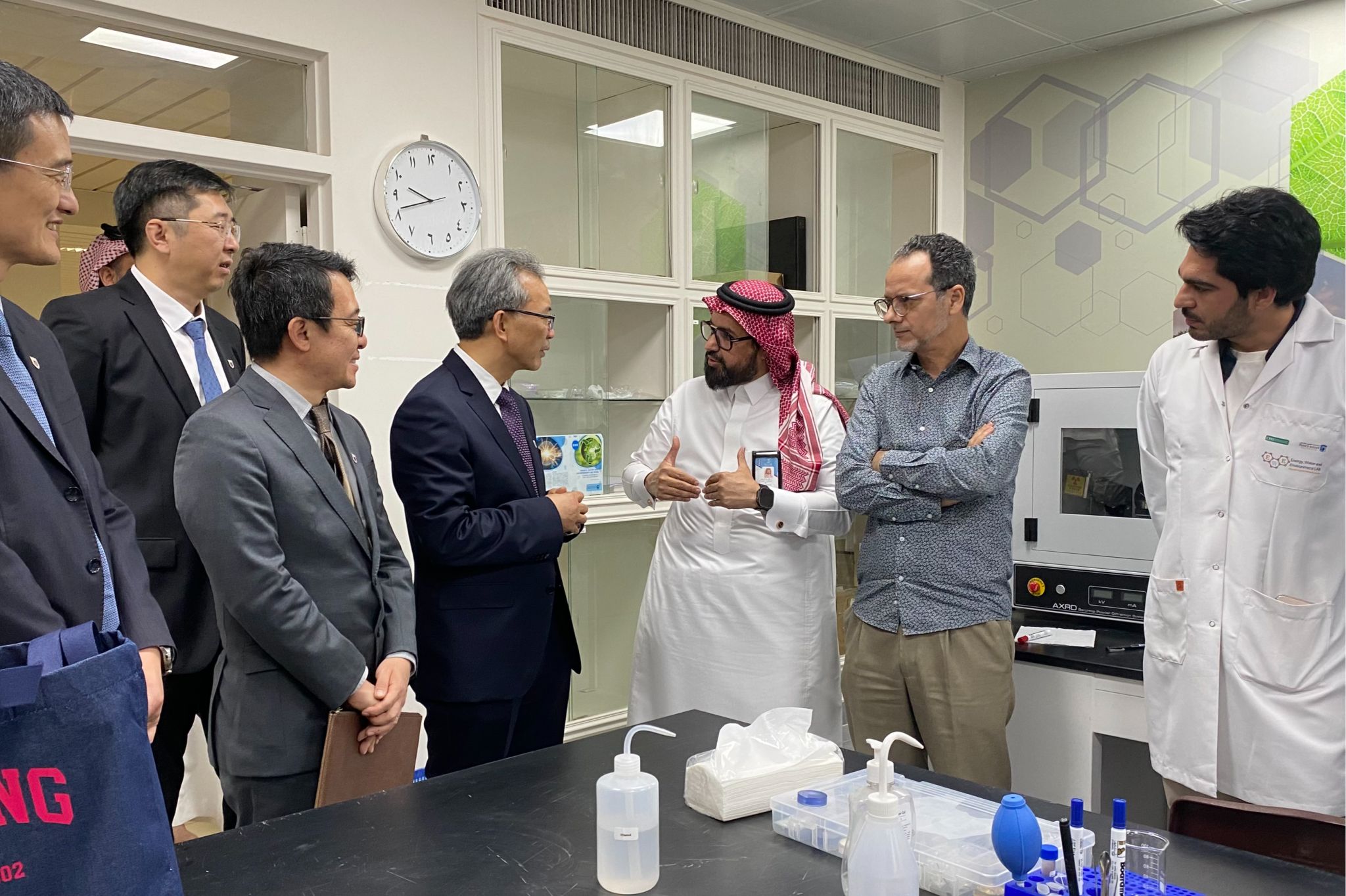 On the afternoon of May 3, the delegation visited Prince Sultan University, the first private non-profit university in Saudi Arabia, which houses the country's first Confucius Institute. Tan Zhemin highlighted NJU's achievements in scientific research and talent cultivation in recent years, as well as its characteristic projects promoting international education. Ahmed Bin Saleh Al-Yamani, President of Prince Sultan University, highly praised Nanjing University's development achievements and looked forward to expanding and deepening cooperation between the two universities. The two sides conducted in-depth discussions on cooperation in graduate talent cultivation, personnel exchanges, and joint research. After the meeting, Tan Zhemin visited key laboratories, including the Innovation Center, the Energy Resources and Environmental Science Laboratory, and the Product Development Center.