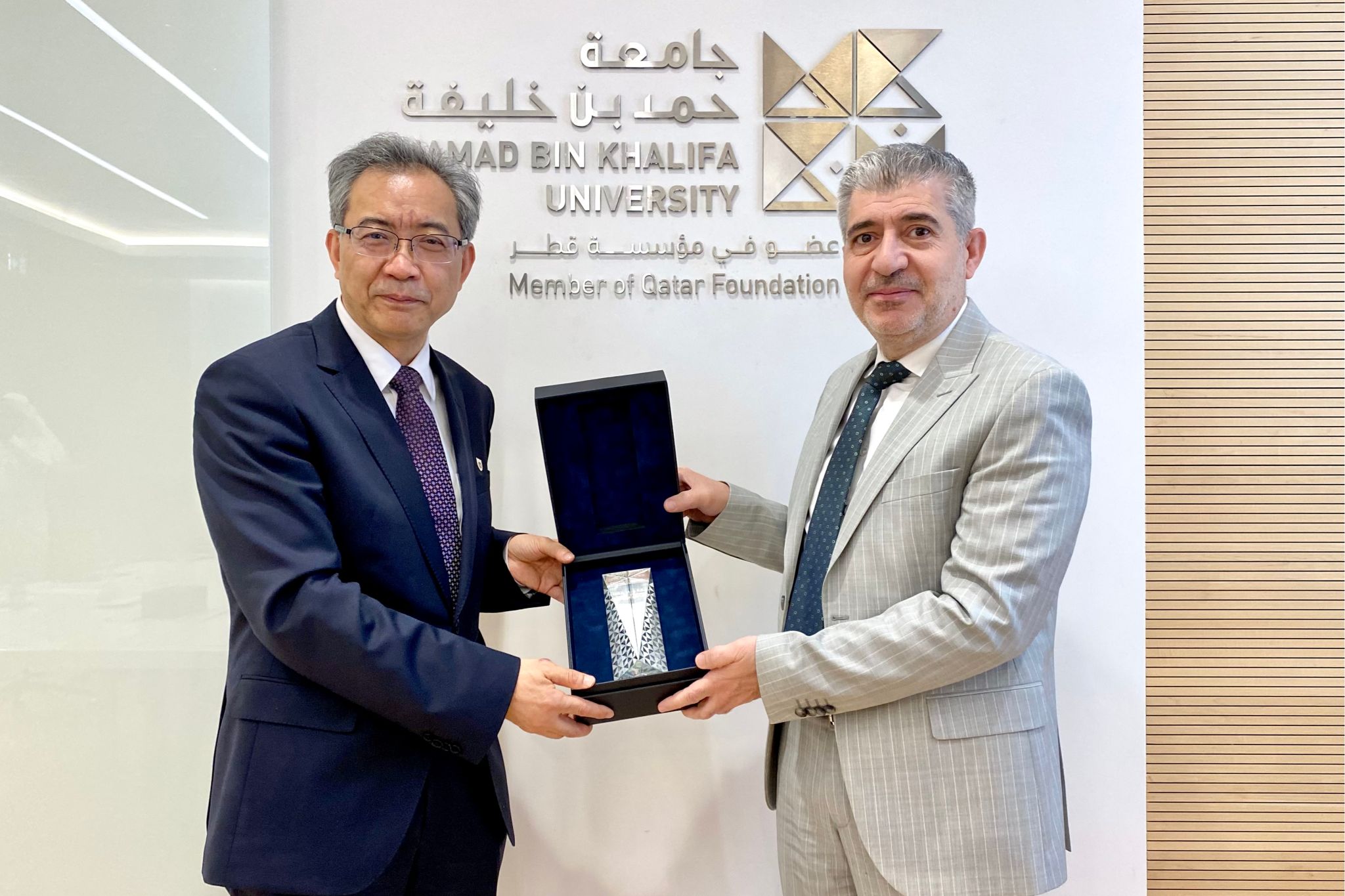 On the morning of May 8, Tan Zhemin visited Hamad Bin Khalifa University in Qatar, holding discussions with President Ahmad Hasnah and Acting Provost Ala Al-Fuqaha. Hasnah introduced the university's history, campus environment, faculty, and research achievements. The two sides reached multiple agreements on deepening faculty and student exchanges and joint training based on disciplines such as computer science and artificial intelligence.