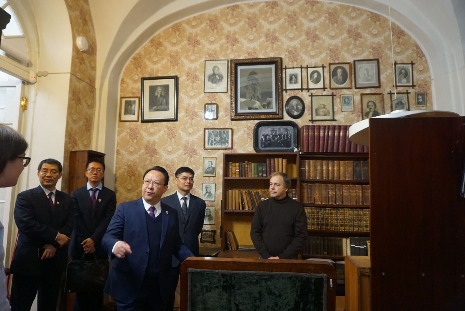 On October 25, the delegation visited St Petersburg State University in company with Zhang Xiaoqing, Chinese Deputy Consul General in St. Petersburg. Tan Tieniu held talks with Nikolay Kropachev, rector of the university, and Yuri Matiyasevich, academician of St. Petersburg Department of the Steklov Mathematical Institute of the Russian Academy of Sciences. Both sides agreed to advance collaboration in the disciplines of mathematics, chemistry, and geography.