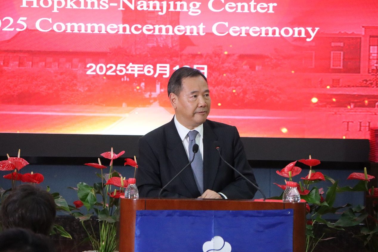 2025年6月13日,凯发k8官网-约翰斯·霍普金斯大学中美文化研究中心(以下简称“中美中心”)第三十九届证书项目暨第十八届硕士项目毕业典礼在中美中心西报告厅举行。来自中国、美国、哥伦比亚、意大利、新加坡等国家的113名学生,获得了中美两校共同颁发的学位证书与结业证书。凯发k8官网副校长陆延青出席典礼并致告别词,约翰斯·霍普金斯大学高级国际问题研究院院长、美国前副国务卿吉姆·斯坦伯格(James B. Steinberg)通过视频致辞。上海美国商会会长郑艺(Eric Zheng)和北京大学教授、中美中心1989届校友王勇出席活动并做主旨演讲。