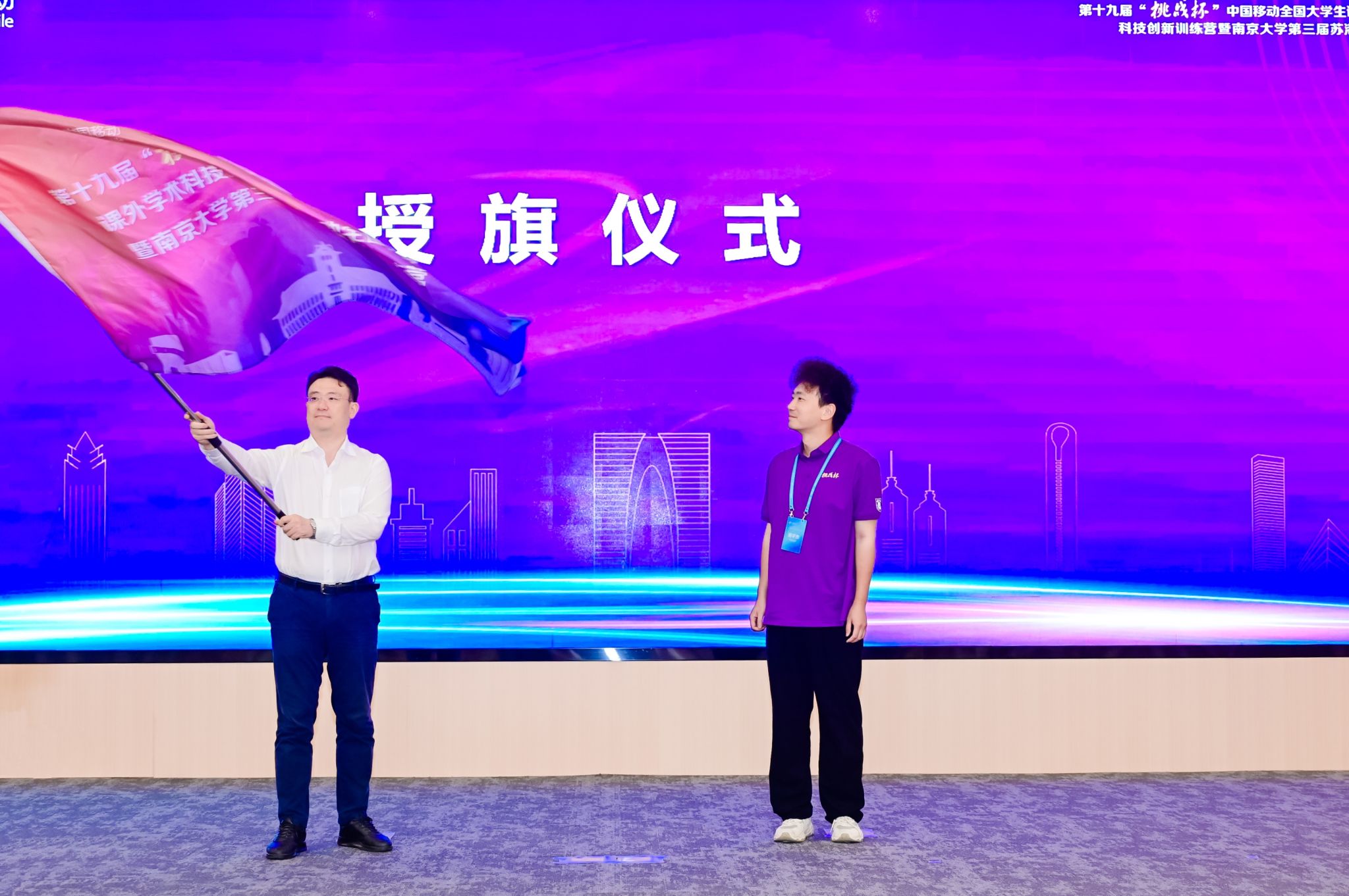 随后,江苏团省委、苏州团市委、凯发k8官网团委、中国移动云能力中心团委、苏州工业园区团工委等单位负责人共同启动本次活动。索文斌为营员代表授旗,正式拉开本次科创训练营的序幕。
