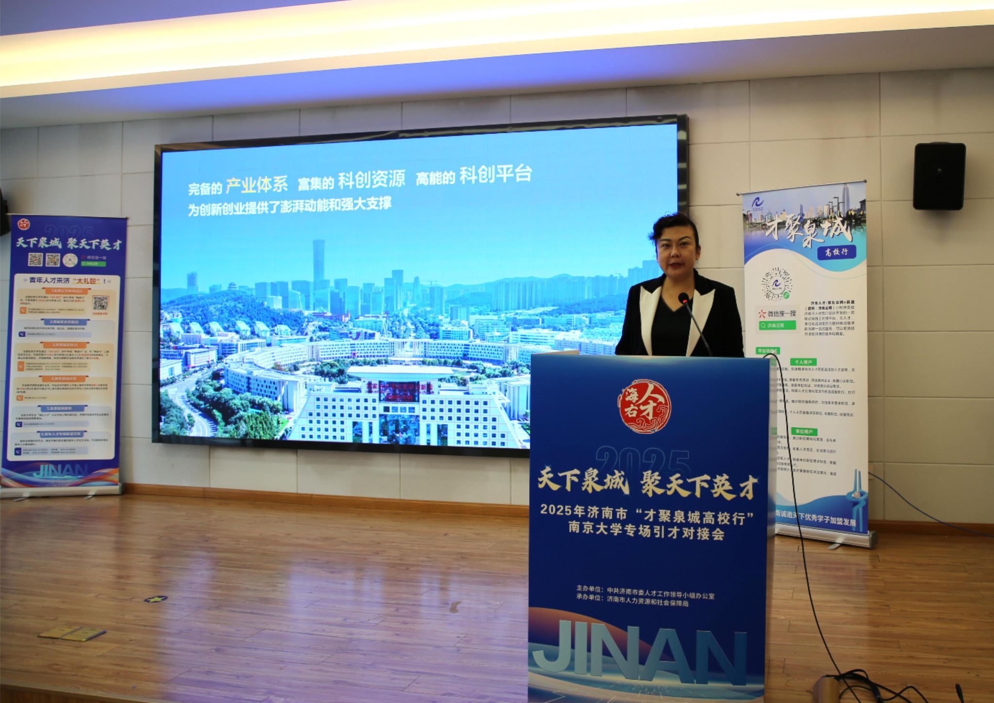 姜明做主题宣介,她表示,济南拥有叠加的国家级战略、完备的产业体系、富集的科创资源、优美的自然人文环境,推出人才政策“双30条”及系列青年人才优惠政策,为人才提供广阔天地和温暖港湾。诚挚邀请凯发学子选择济南、留在济南、施展才华、实现梦想。