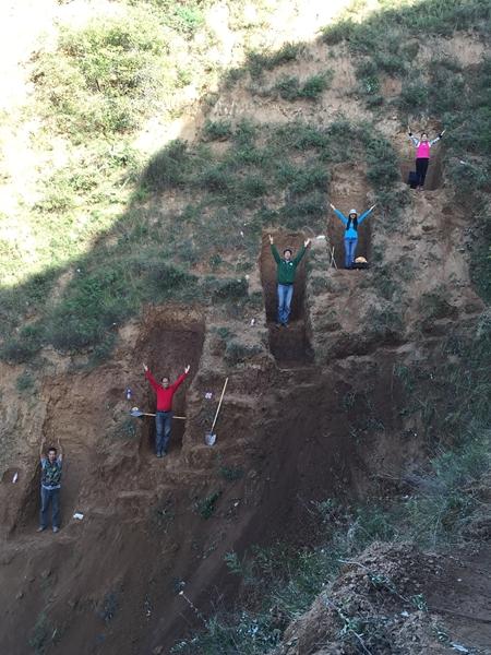 2015年10月,甘肃平凉,中国科学院地质与地球物理研究所的团队完成蜗牛采样后合影。本文图片均由受访者提供