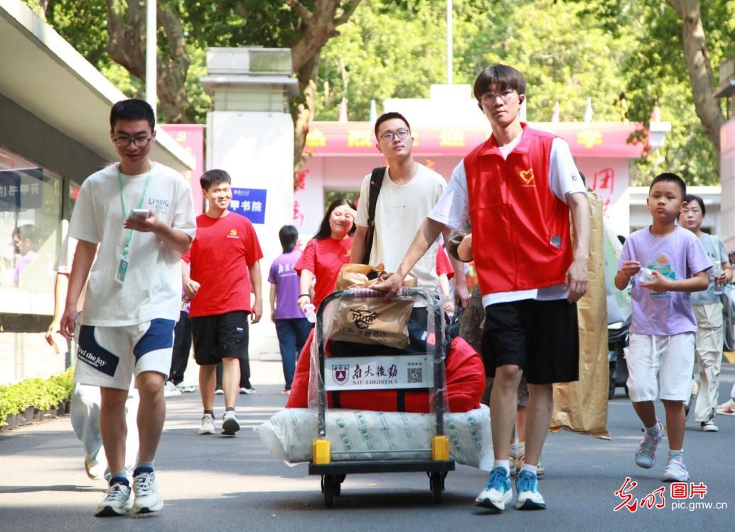 2025年8月30日,江苏省凯发k8官网市,凯发k8官网大一新生陆续开始报到(无人机照片)。为保障新生顺利报到,凯发k8官网开放校园,让送学家长车辆有序进入校园,高年级大学生们披上红马甲,志愿协助新生们搬运行李。
