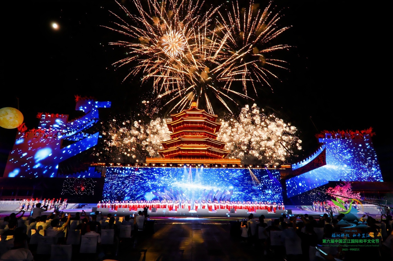 开幕式民族文艺演出以“福地怀化·和平芷江” 为主题,分为 “胜利之路”“文明长河”“民族欢歌”“和平之声”四个篇章,呈现出一场极具国际范、科技感且饱含厚重历史的视听盛宴。主题曲《和平》由新西兰流行乐男歌手Laurence(中文名:罗艺恒)与中国歌剧舞剧院青年女高音刘桐联袂演绎,将国风唱腔与现代流行曲风融合,搭配蕴含东方文化的歌词,传递和平的美好愿景。大型音诗画《砥柱湖湘》通过朗诵、影像与情境舞蹈,展现湖湘大地的精神力量;大型光影诗舞《屈原的树》以屈原与芷江杨溪云树的精神联结为线索,融合多种艺术元素,打造跨越时空的楚辞意境;音乐情景剧《飞虎·世界》还原了国际友人携手互助的真实往事;跨时空情景表演《芷江,向海而生!》则串联起芷江的发展历程。晚会的最后,伴随着焰火表演和《玉盘》《芷江飞来一支和平歌》《歌唱祖国》三首歌曲,现场氛围迎来高潮,“和平”的理念变得更为具象。