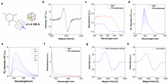 为了获得合理的机理理解,我们还需要证明自由基的产生,首先加入了TEMPO,的确能抑制反应发生,但无法分离加合物。此外,加入自由基捕获剂1,1-二苯乙烯,也未观察到自由基加成产物,表明是离域的硼笼自由基,而不是硼中心自由基。 通过稳态顺磁共振(EPR)技术很容易捕获到吖啶自由基,但仍然观测不到巢式碳硼烷自由基,表明该自由基反应活性高,在体系内浓度低,或者为短寿命瞬态自由基。清华大学郭兴伟教授用其最新开发的先进时间分辨EPR技术(U-PSD TREPR)成功捕获到巢式碳硼烷自由基(寿命~2.5 μs,g = 2.0047, 图2g)。这是首次通过EPR技术鉴定瞬态巢式碳硼烷自由基,理论计算模拟EPR也与实验结果吻合(图2h)。