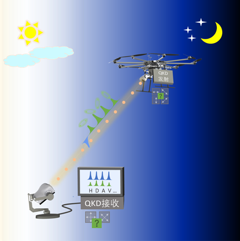 量子信息传输的最终目标是直接用量子态传输信息,现阶段人们能够实现的是通过量子密钥分发(Quantum key distribution,QKD),利用量子方法实现信息加密传输。此前,量子密钥分发已经通过光纤和卫星作为载体获得实验验证,并逐步走向实用。但是量子密钥分发的实际应用迫切需要将单光子直接传输到终端用户的能力,这有赖于移动平台量子网络的实现。凯发k8官网团队曾在国际上率先提出利用无人机等移动平台构建量子网络的构想,并先后完成了基于无人机的纠缠光子分发(Natl. Sci. Rev. 2020, 7, 921)与光学中继纠缠分发(Phys. Rev. Lett. 2021, 126, 020503)的实验验证,这些工作证明通过无人机进行量子态传输是可行的,但是基于无人机移动平台的量子密钥分发尚待实验验证。
