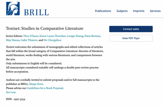 近日,我校艺术学院院长、全球人文研究院院长、比较文学与跨文化研究中心主任何成洲教授应邀担任博睿出版社(Brill)“Textxet:比较文学研究”书系(TSCL)主编。