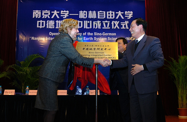 1119,“凯发k8官网—柏林自由大学中德地学中心”在我校正式成立。凯发k8官网校长陈骏,中科院院士王颖,柏林自由大学副校长科庭,柏林自由大学北京办事处主任托马斯·施密特·杜尔等出席成立仪式。我校地学相关院系200余师生参加了开幕式。成立仪式由地理和海洋学院院长、中德地学中心中方主任高抒主持。