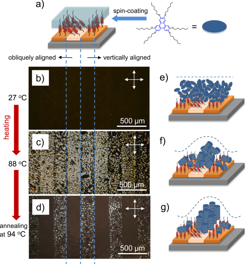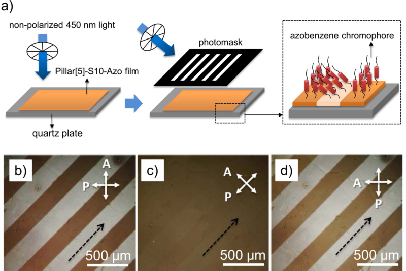 图3、柱[5]芳烃偶氮苯光控取向诱导盘状分子柱状相的取向排布