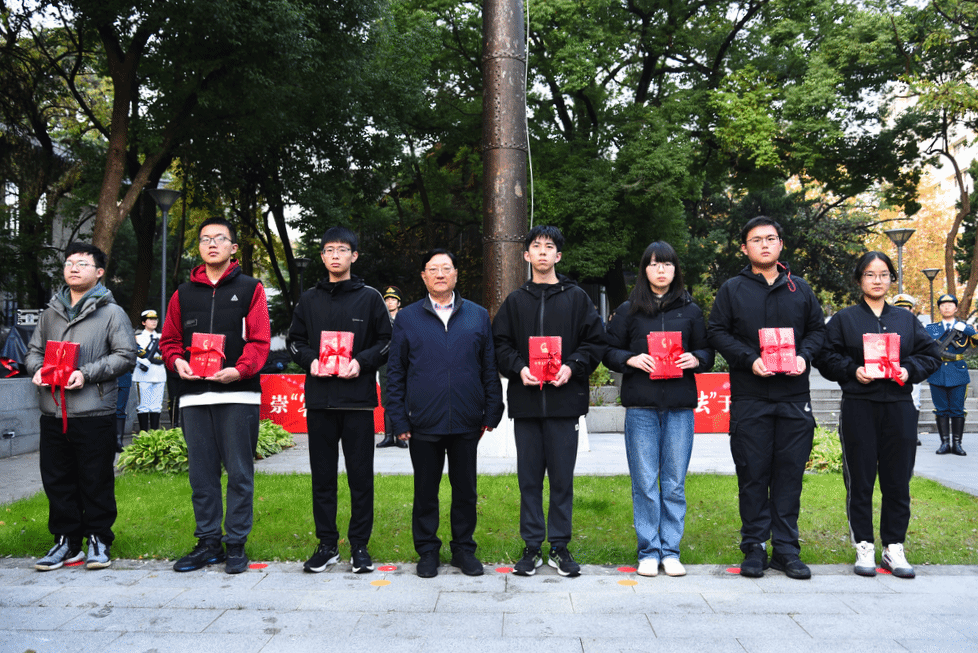 升旗结束后,赵曙明为新生学院学生代表赠送《中华人民共和国宪法》,勉励新生学子积极学习宪法知识、弘扬法治精神,使宪法精神融入日常、贯穿平常,共同营造尊重法律、崇尚法治的良好氛围。