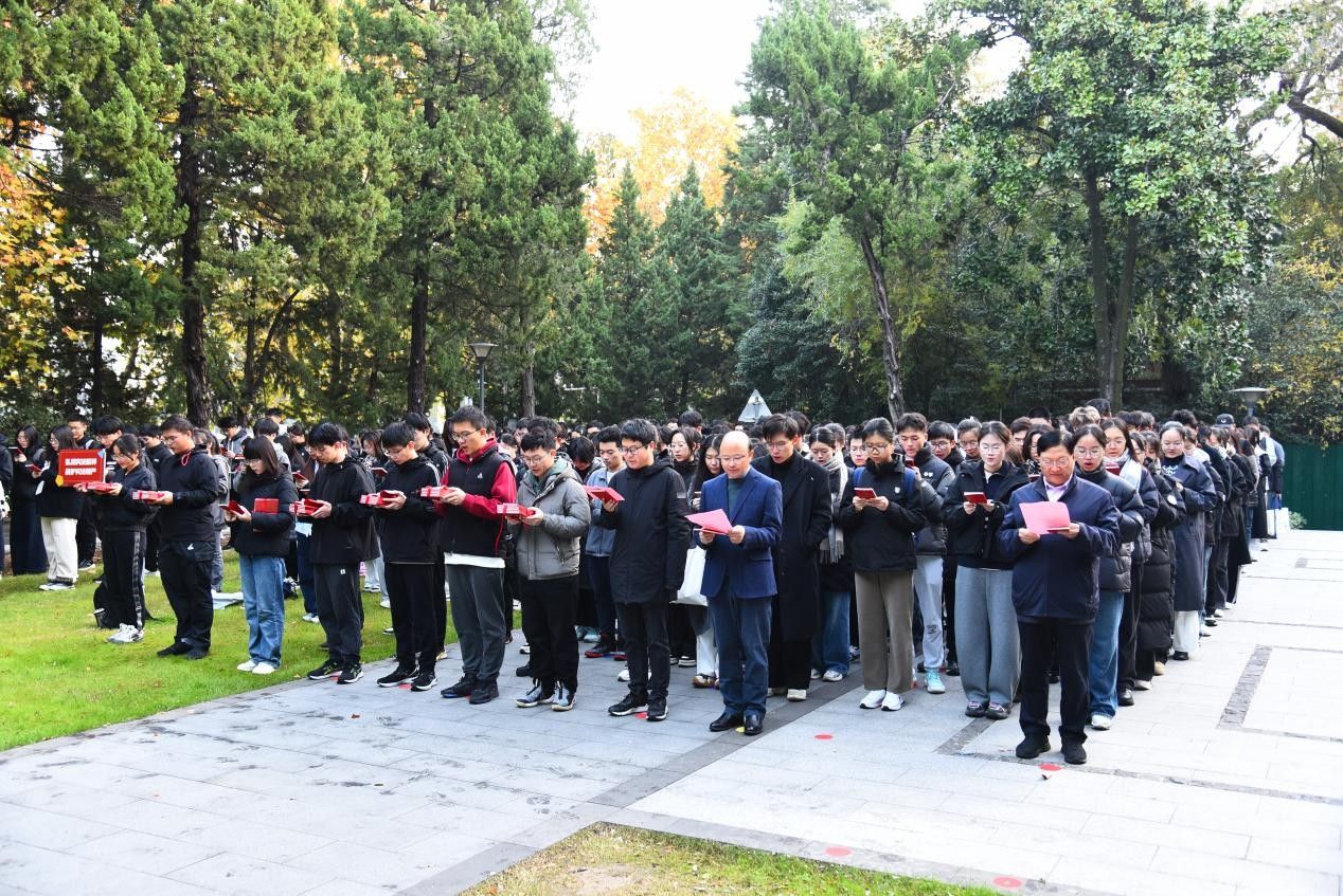 12月2日上午,行知书院“宪法宣传周”主题升旗仪式在鼓楼校区大纛坪举行。升旗仪式上,党委学工部部长李浩带领全体师生朗读《中华人民共和国宪法》选段,在朗朗晨读声中,同学们深入了解宪法内容,感受其字里行间的庄严与力量,宪法的精神也深深植根于每一位同学的心中,激励着新生学子以实际行动尊崇宪法、维护宪法。