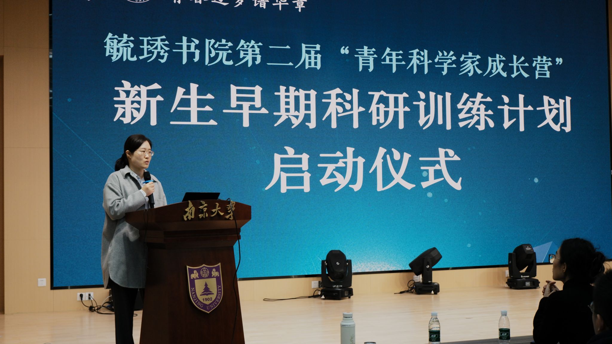 邓泽燕首先为同学们明确了毓琇书院“青年科学家成长营”的定位与意义,接着回顾了上一届毓琇学子取得的丰富成果,并展望新一届新生早期科研训练计划,为毓琇书院新生点燃了科研热情。接着,陈力立和张秀娟分别为第一届“青年科学家成长营”结项汇报获奖团队和第一届早期科研文献综述大赛获奖团队颁发荣誉证书。