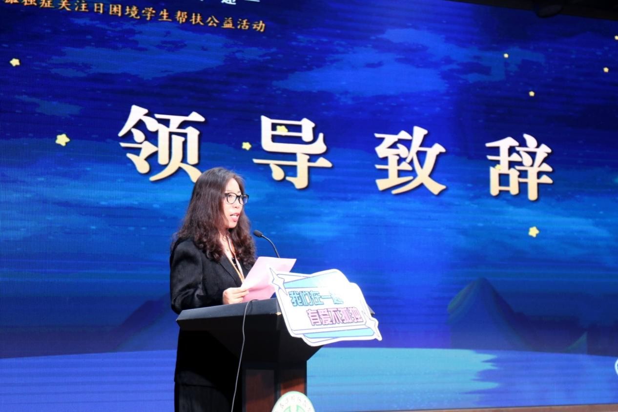 在接过星愿福袋后,孤独症学生代表走上舞台,用稚嫩而清澈的声音表达了感谢。她表示这些礼物让他们知道自己并不孤单,她和小伙伴们会带着这份魔法礼物勇敢长大。