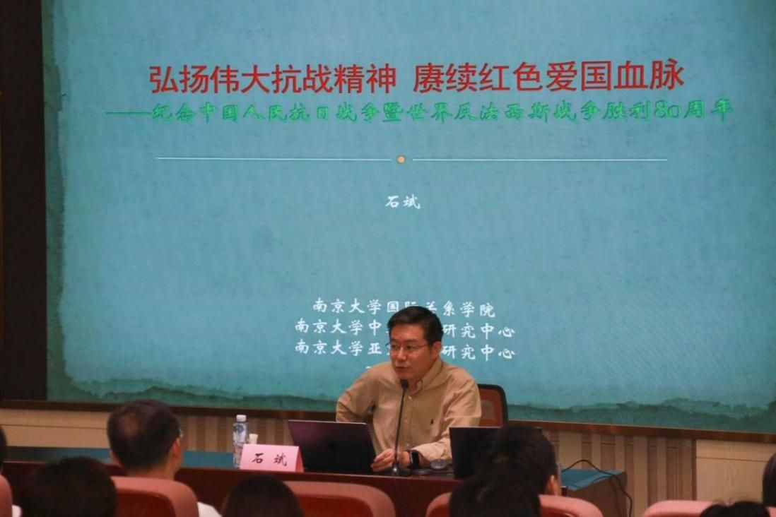 随后,石斌以《弘扬伟大抗战精神,赓续红色爱国血脉》为题讲授主题党课。他聚焦抗战主题,通过详实数据与历史事实,展现了中国人民在十四年抗战中所作出的巨大牺牲与重大贡献。他深入剖析了抗战精神的内涵,将其概括为爱国情怀、民族气节、英雄气概、必胜信念以及共同体意识,强调这是新时代激励中华儿女战胜风险挑战、实现民族复兴的强大精神力量。
