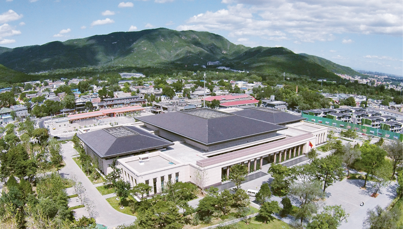 香山革命纪念馆是专门集中展示香山革命历史的重要场馆,于2018年4月23日开始建设,2019年9月13日正式对外开放。纪念馆庄重大气,“四梁八柱”的雨棚造型寓意党中央在香山为新中国搭建“四梁八柱”。图为航拍的纪念馆全景。 香山革命纪念馆供图