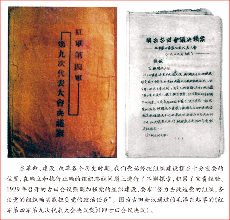 在革命、建设、改革各个历史时期,我们党始终把组织建设摆在十分重要的位置,在确立和执行正确的组织路线问题上进行了不懈探索,积累了宝贵经验。党的一大党纲就规定了党的组织建设的原则。党的六大明确提出“组织路线”的概念。1929年召开的古田会议要求“努力去改造党的组织,务使党的组织确实能担负党的政治任务”。在1938年召开的党的六届六中全会上,毛泽东同志明确指出,“政治路线确定之后,干部就是决定的因素”,并提出才德兼备的干部标准和任人唯贤的干部路线。新中国成立后,我们党着眼社会主义革命和建设的需要,强调各行各业干部要又红又专。党的十一届三中全会以后,邓小平同志明确指出,“中国的稳定,四个现代化的实现,要有正确的组织路线来保证”,并提出了干部队伍革命化、年轻化、知识化、专业化的方针。党的十四大提出“培养和造就千百万社会主义事业接班人,从组织上保证党的基本路线的贯彻落实”。党的十五大强调“加强党的组织建设,根本的是把党建设成坚强的领导核心,充分发挥党的组织优势”。党的十六大提出尊重劳动、尊重知识、尊重人才、尊重创造的重大方针。党的十七大强调,必须把党的执政能力建设和先进性建设作为主线,以造就高素质党员、干部队伍为重点。