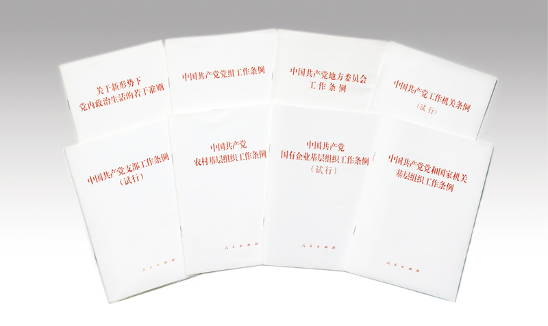 图为党的十八大以来,制定和修订的关于组织建设方面的部分党内法规。